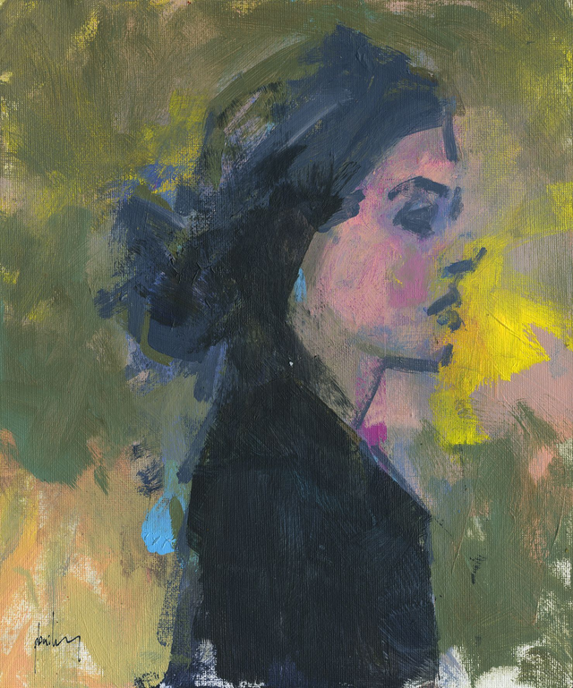 This painting is from a series of works studying human form fusing a range of diverse influences (graffiti; comic book; traditional), colour experimentation and dynamic mark-making.