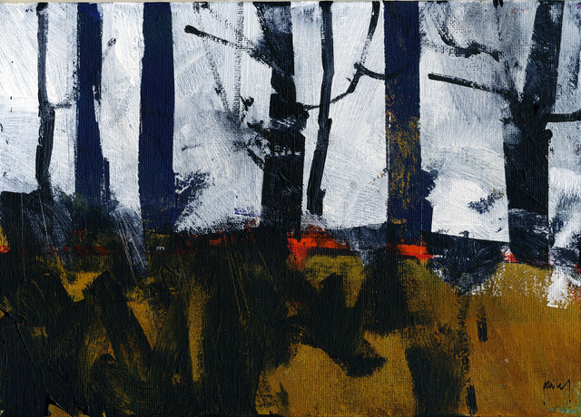 This painting is from a series of works called "Woodland abstracts". These abstracts are inspired by the organic, repetitive geometric patterns I perceive in the deep woodland.