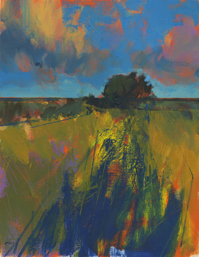 This painting is from a series of works called "Landscape abstracts". These paintings have been inspired by the varied landforms around the UK, typically the pastoral East Anglian farmland, Welsh mountain and moorland, and rolling borderlands of the English Marches.