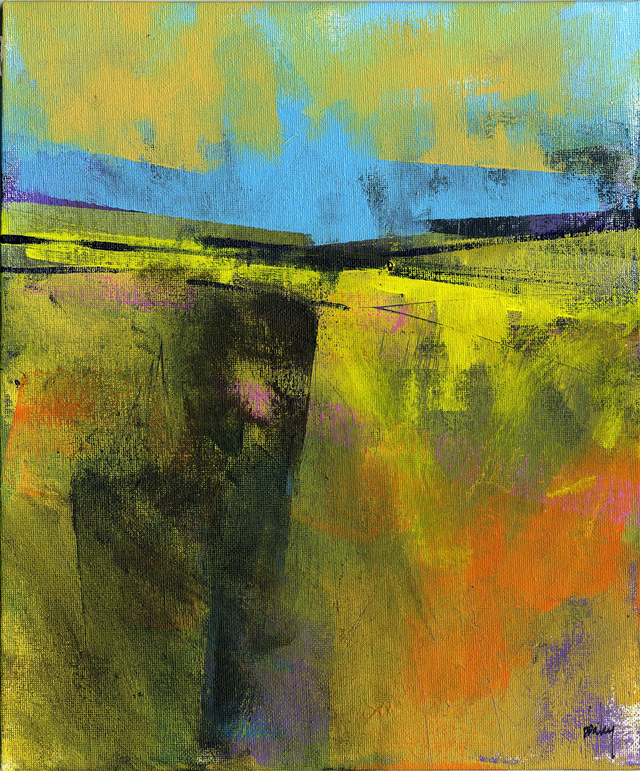 This painting is from a series of works called "Landscape abstracts". These paintings have been inspired by the varied landforms around the UK, typically the pastoral East Anglian farmland, Welsh mountain and moorland, and rolling borderlands of the English Marches.